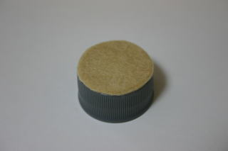 | 1.ペットボトルのキャップに丸いフェルト貼る はみ出したフェルトはカットして下さい! |